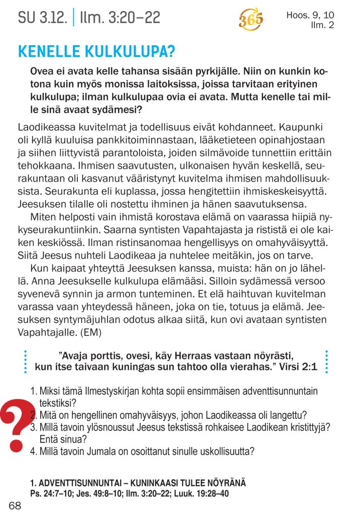 Lue Ilm. 3:20-22 ja pohdi tekstiä alla olevan raamatunlukuopas Hetkisen tekstin ja kysymysten kanssa. (Hetkinen 4-2023)